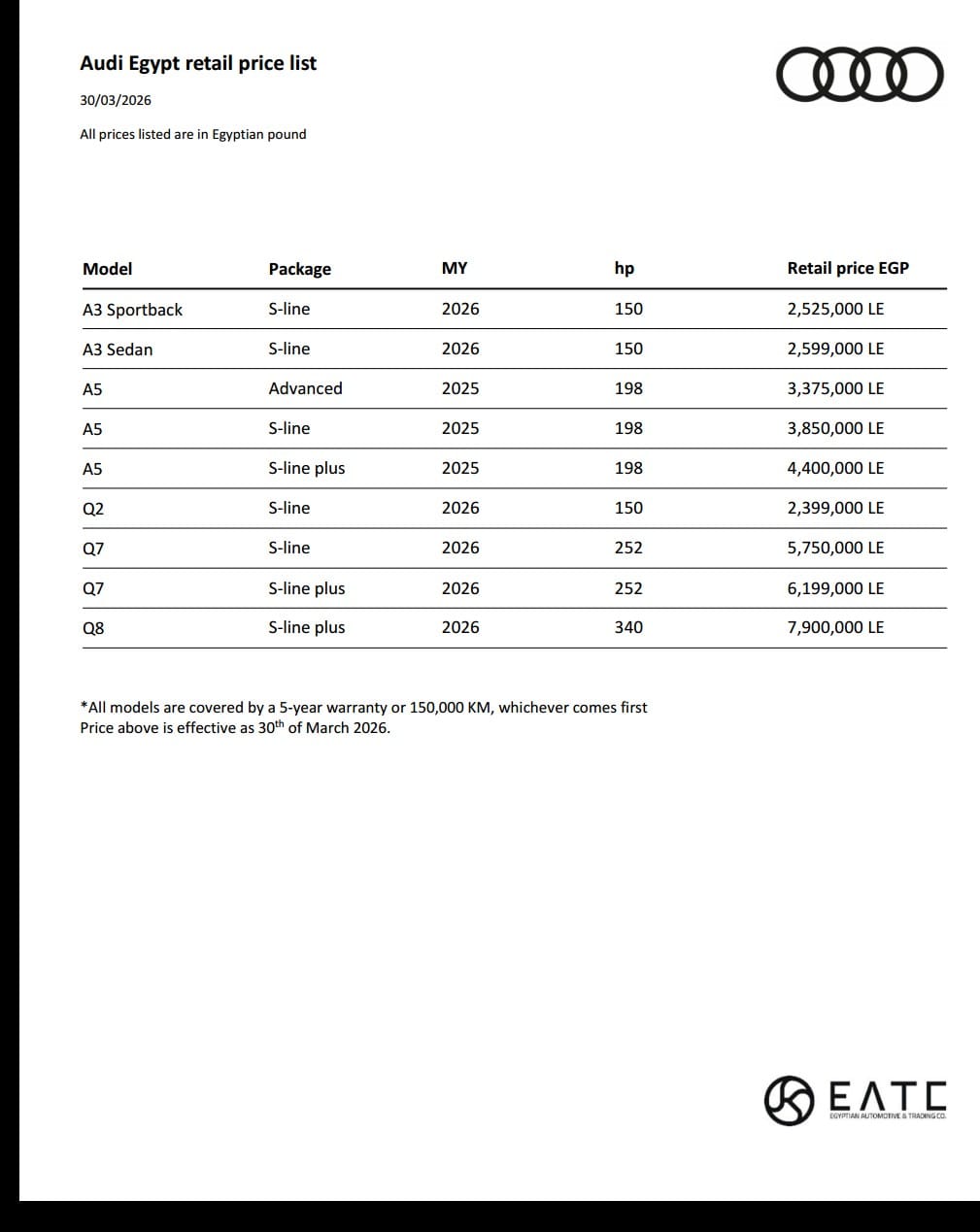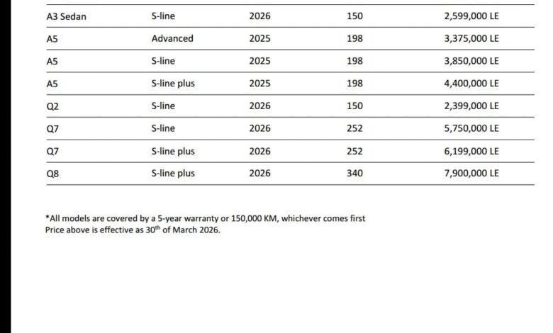 أحدث التعديلات في قائمة أسعار سيارات “Audi”