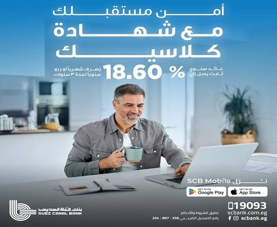 شهادة كلاسيك من بنك قناة السويس بعائد ثابت 18.6%