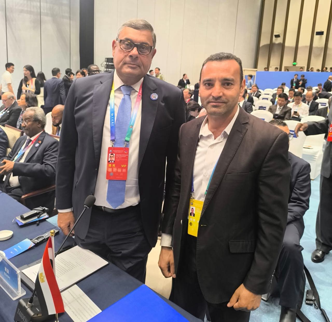 رئس الوفد المصرى السفير أبو بكر حفنى محمود نائب وزير الخارجية بمشاركة علاء البيلى وزير مفوض تجارى لشئون الترويج للاستثمار بوزارة الاستثمار والتجارة الخارجية والسفير خالد نظمى سفير مصر لدى الصين ، بحضور الكاتب الصحفى أيمن عامر وكيل الشئون الأفريقية والعربية بنقابة الصحفيين المصرية .