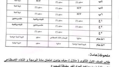 - تلتزم المدارس بتنفيذ الجدول المعتمد داخل كل محافظة دون تعديل.