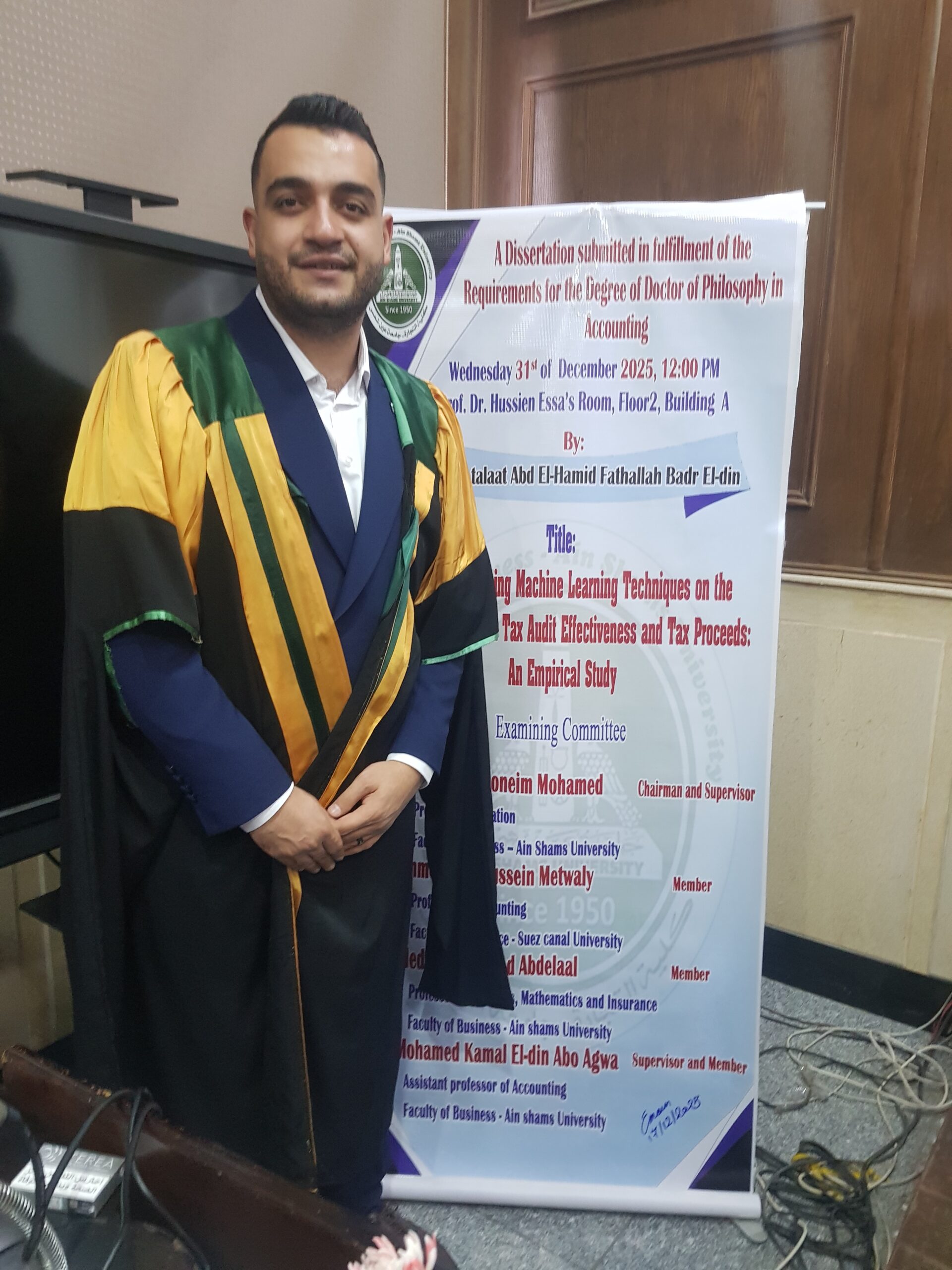 ويُعد هذا الإنجاز تتويجًا لجهود علمية وبحثية متواصلة بذلها الدكتور طلعت عبد الحبيب بدر الدين خلال فترة دراسته، ويعكس حرصه الدائم على تطوير الفكر المحاسبي ودعم البحث العلمي.