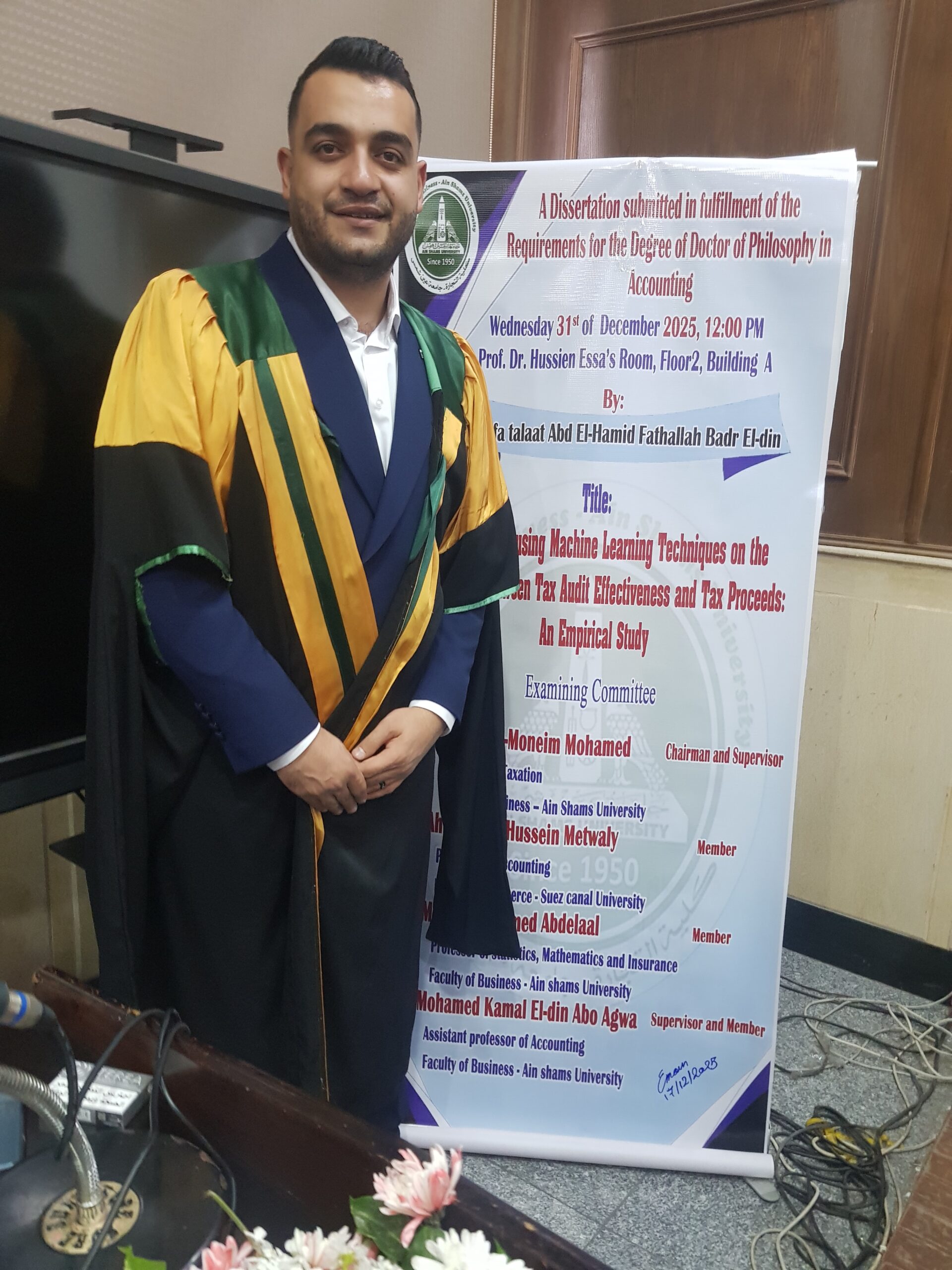 حصول الدكتور مصطفي عبد الحميد فتح الله بدر الدين على درجة الدكتوراه في فلسفة المحاسبة من جامعة عين شمس