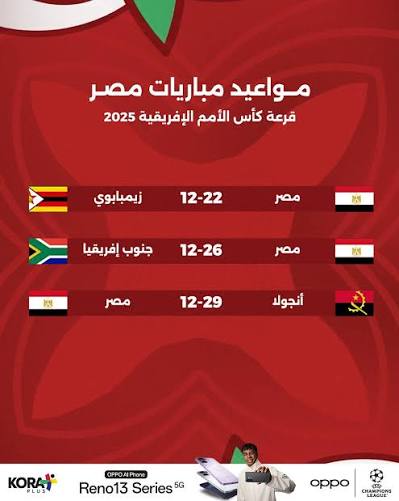 • أخيرا، مباراة مصر وأنجولا تقام يوم 29 ديسمبر، في تمام الساعة 6 مساء بتوقيت القاهرة.