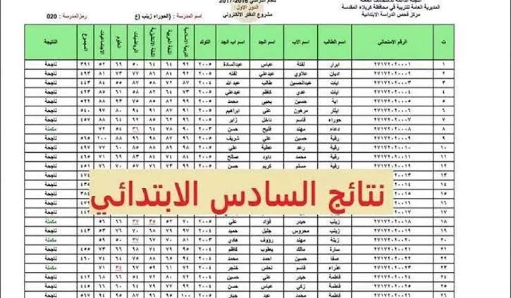 نتيجة الصف السادس الابتدائي 2026 برقم الجلوس